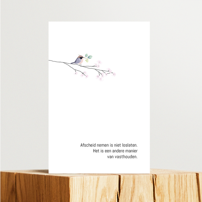 Kaart 'vogel' Afscheid nemen is niet loslaten