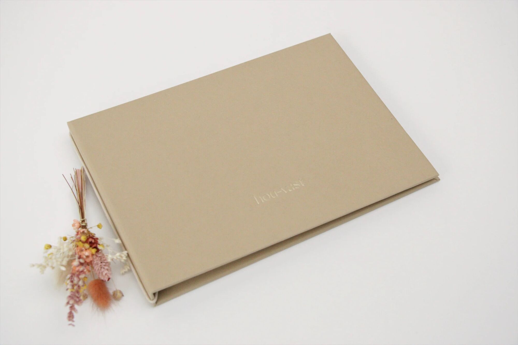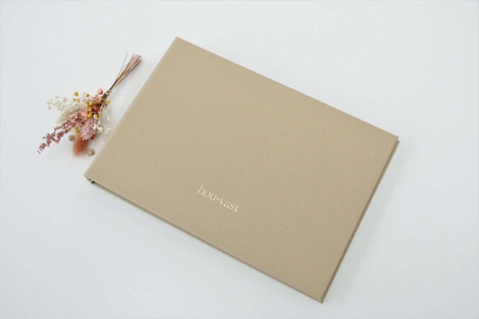 Dit stijlvolle boek met hard kaft in ecologisch papier met opschrift 'hou-vast' in matte goudfolie, nodig uit om over de dierbare overledenen te vertellen. Het zachte katoenpapier luistert. Dit unieke en waardevolle troostgeschenk groeit door het te laten rondgaan door familie en vrienden. Ook geschikt als condoleanceboek tijdens een plechtigheid.